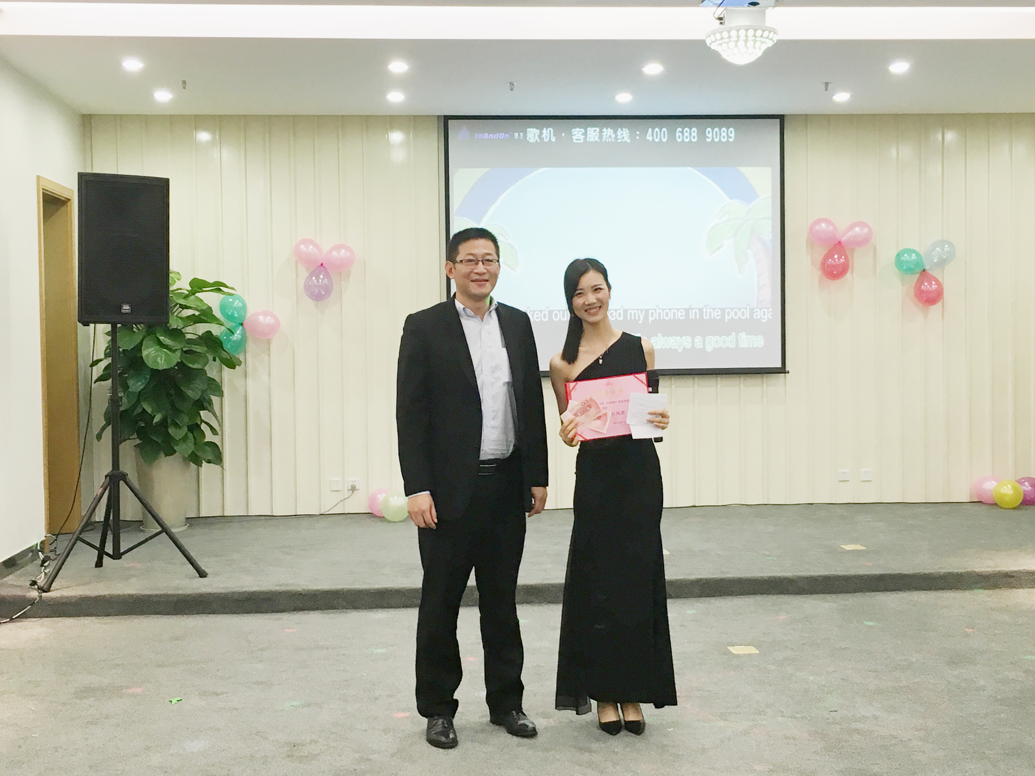 在令人捧腹的游戲后,主持人上臺宣布了比賽成績及最終結果:12號選手葉會財憑借其優(yōu)美的聲線,精彩的表演打動了現(xiàn)場所有評委和觀眾,奪得桂冠,鄭雪玲、吳敏靜榮獲二等獎,李健藍,黃均英,鐘華榮獲三等獎,王明銳,彭寧,鄧秋媚,王海榮獲愛樂獎。本次比賽還設置最佳臺風獎,最終由鄭雪玲選手獲得此獎。